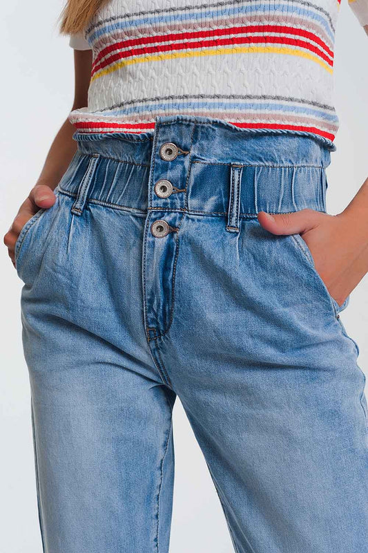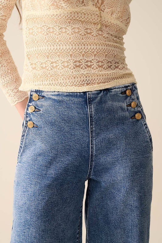 Jeans Marineros de Pierna Recta con Botones Dorados en Lavado Medio