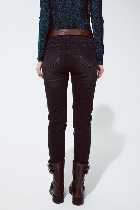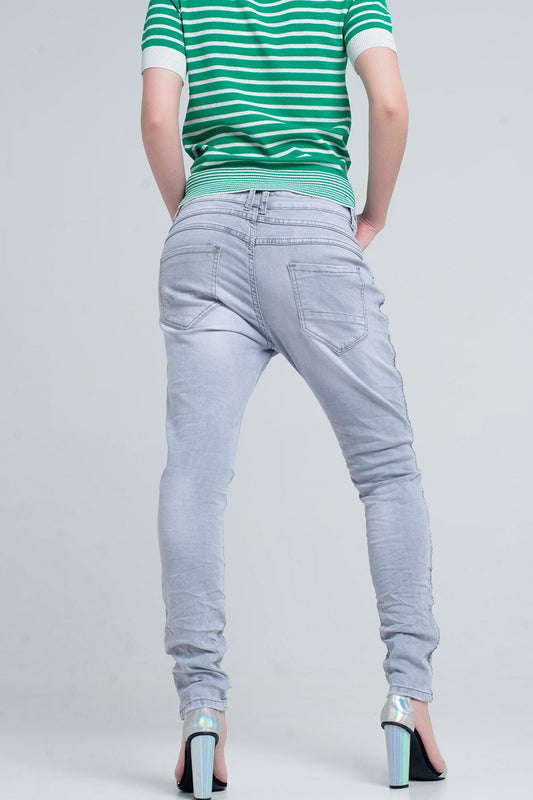 Jeans super ajustados con rotos en la rodilla y el bajo