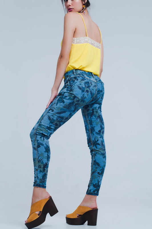 Jeans pitillo en lavado medio con rotos en las rodillas