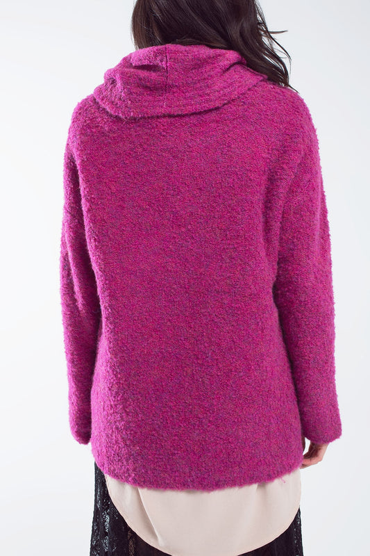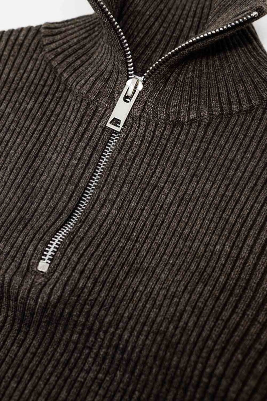 Jersey ajustado de canalé marrón con cierre de cremallera