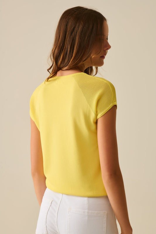 Jersey amarillo de manga corta con malla de punto en el hombro
