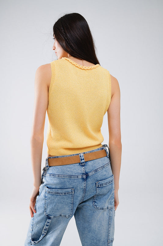Jersey amarillo sin mangas con cuello redondo y detalle de trenza en el escote