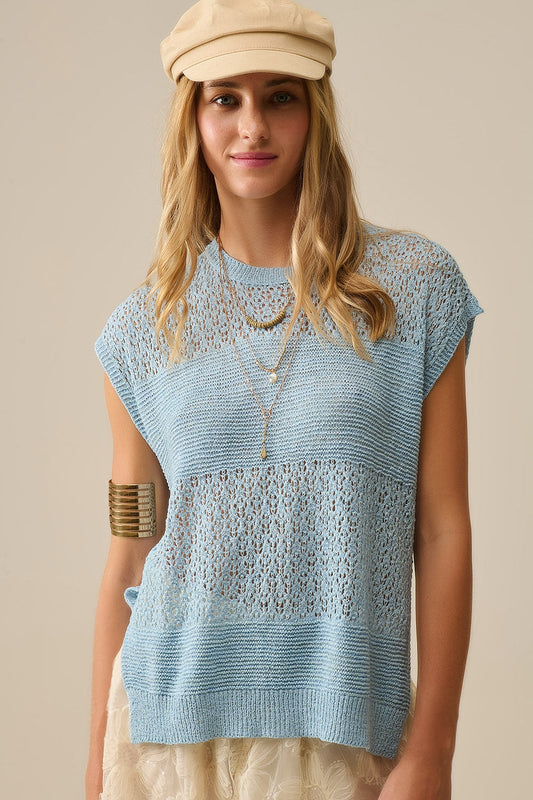 Jersey azul marino de manga corta con malla de punto en el hombro