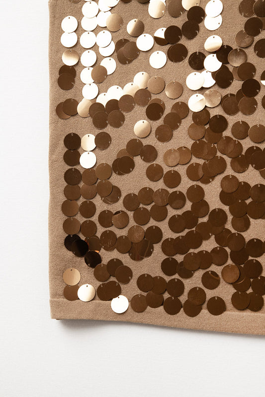 Top de punto camel de manga corta con ribetes blancos en contraste