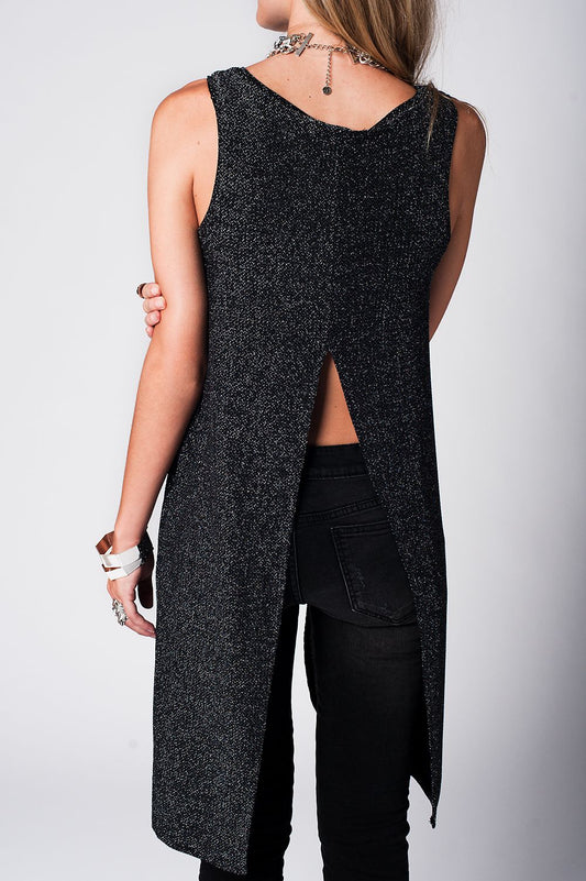Top Halter con cuello atado en estampado abstracto negro y blanco