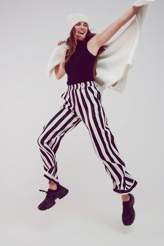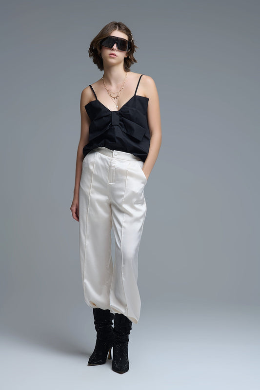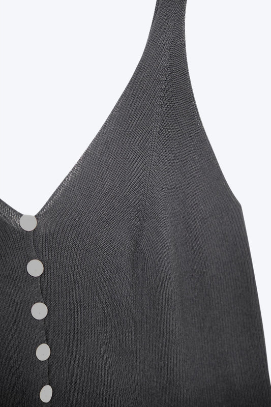 Top negro de punto acanalado con cuello de pico y tirantes finos