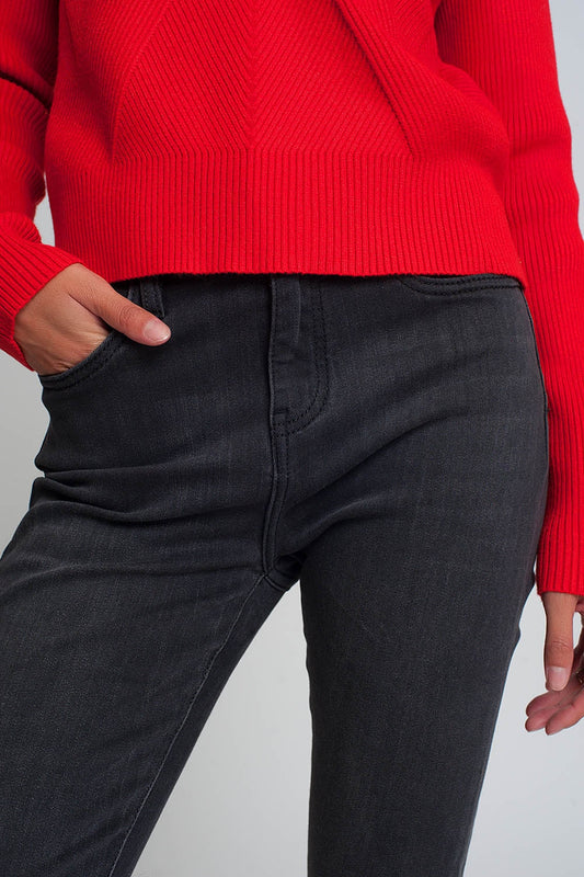 Vaqueros ajustados de talle alto en azul lavado al la piedra muy oscuro
