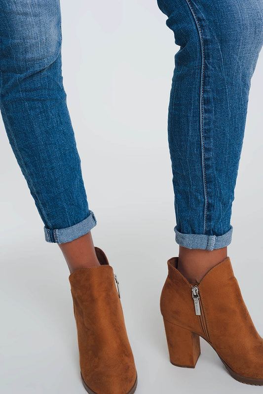 Vaqueros ajustados de tiro alto en precioso azul con lavado a la piedra medio