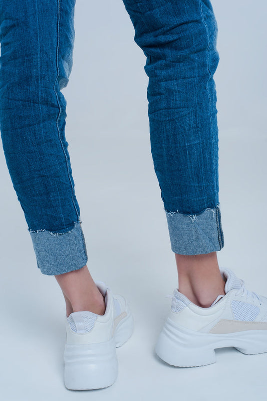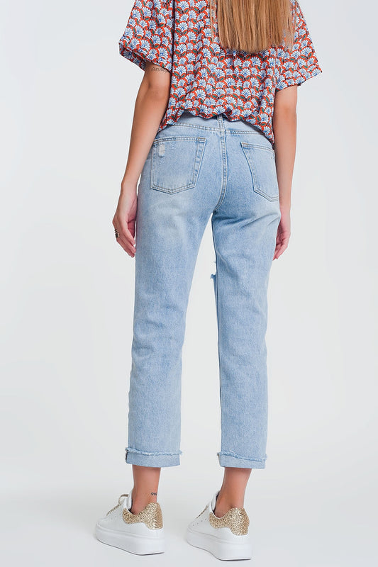 Vaqueros de pierna recta con dobladillo desgastado en color azul claro