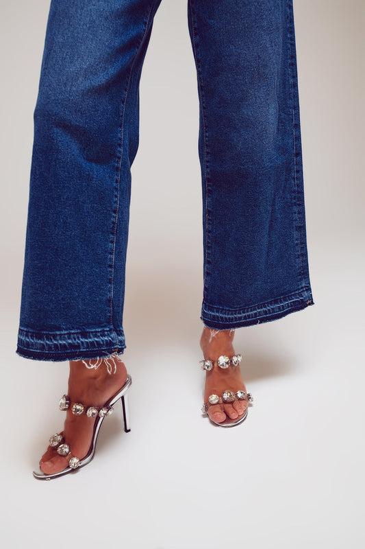 Vaqueros de pierna ancha con detalle en el dobladillo en lavado oscuro