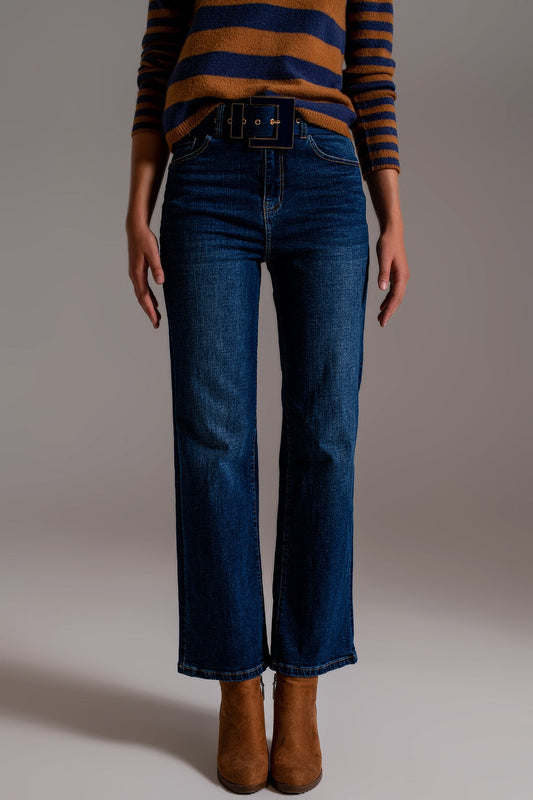 Vaqueros de pierna ancha con detalle de pinzas laterales en azul oscuro
