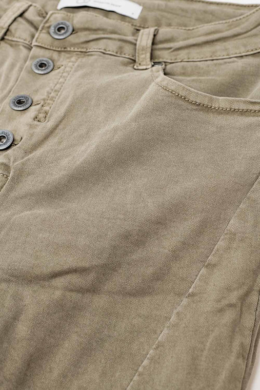 Vaqueros pitillo con botones a la vista en beige oscuro