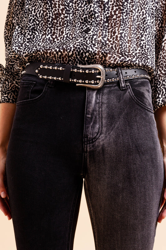 Vaqueros pitillo con lavado negro con bajo irregular elásticos