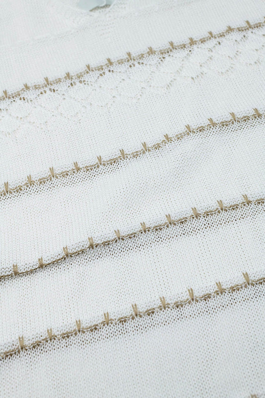 Vestido blanco midi sin mangas con escote en pico y diseño de ganchillo