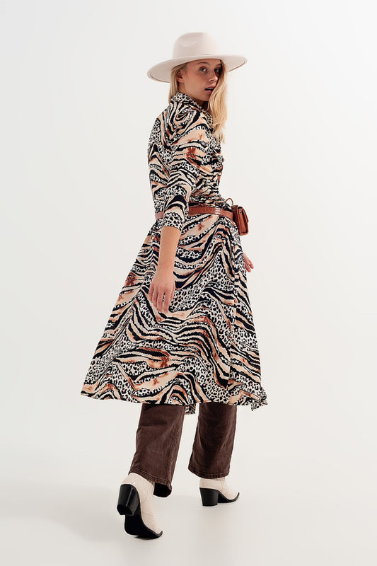 Vestido camisero corto con diseño cruzado y estampado de remolinos