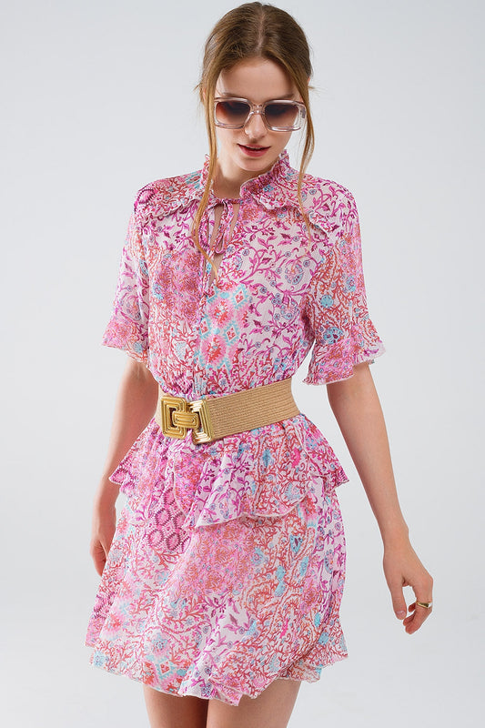 Vestido corto con estampado abstracto y falda de volantes en tonos rosasPrecio habitual EUR 54,90 EURPrecio habitualPrecio unitario / por-