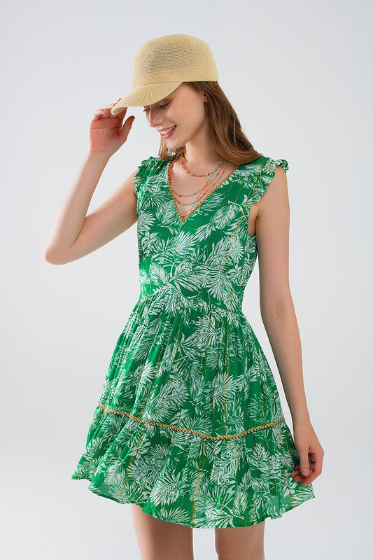 vestido corto verde boho estampado de flores con detalle de lurexPrecio habitual EUR 49,90 EURPrecio habitualPrecio unitario / por-