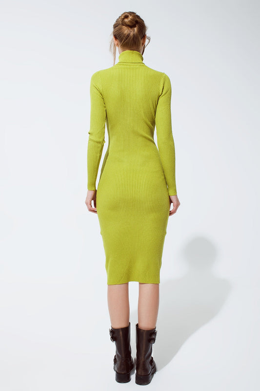 Vestido MIDI en verde con cuello de tortuga