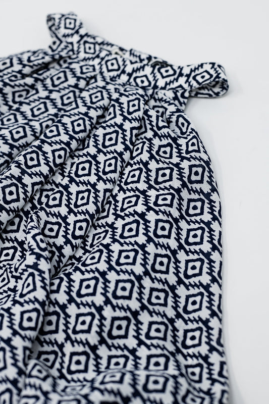 Vestido Midi Halter A Capas En Blanco y Negro