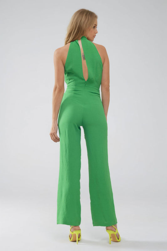 Mono sin mangas con detalle de cremallera y cinturón en color caqui