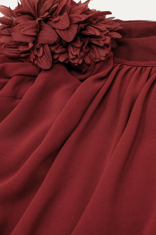 Off The Shoulder Túnica Marrón Con Flor En El Hombro