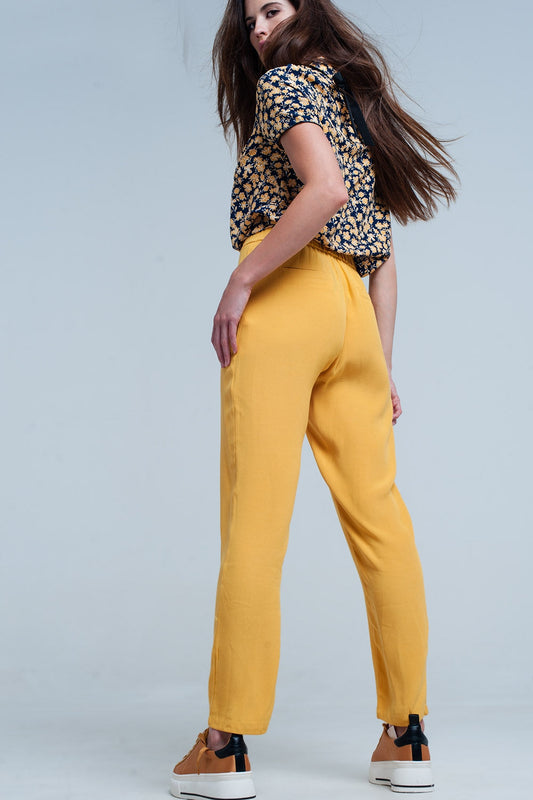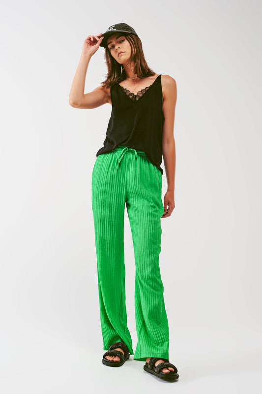Pantalón de rayas azules con cintura elástica y bolsillos