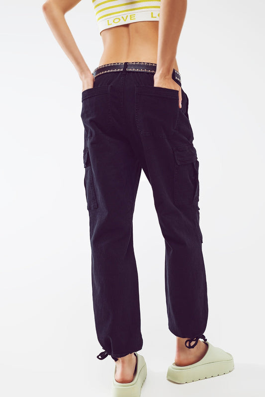 Pantalones caqui con bajos abiertos con cremallera de cuero sintético