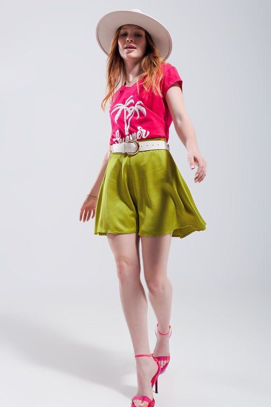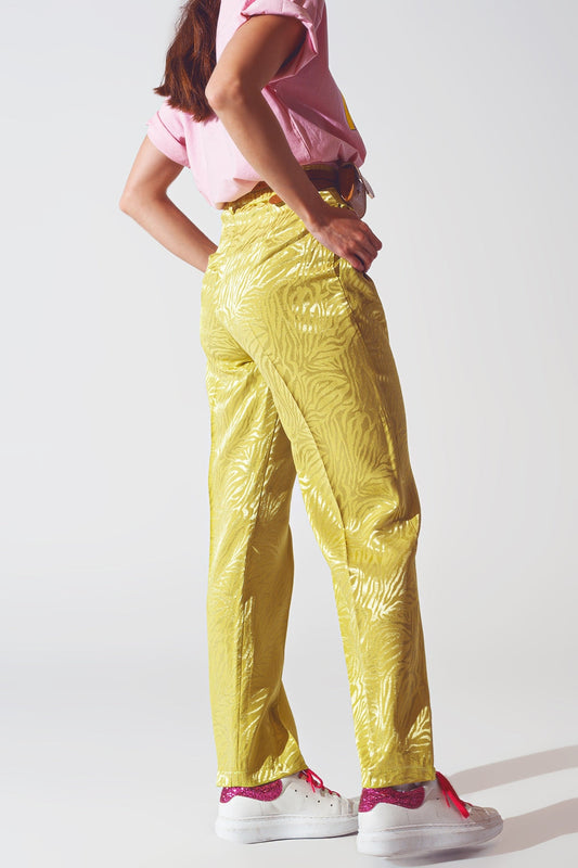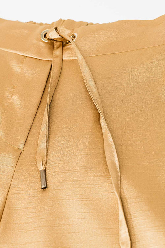 Pantalones de cintura alta de raso beige dorado con cordón de ajuste