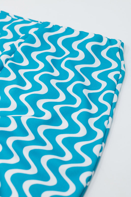 Pantalones de campana azules con estampado estilo años 70 de tiro alto