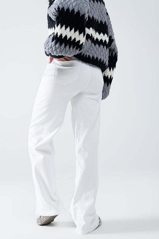 Pantalones Blancos Acampanados Cómodos y Elásticos