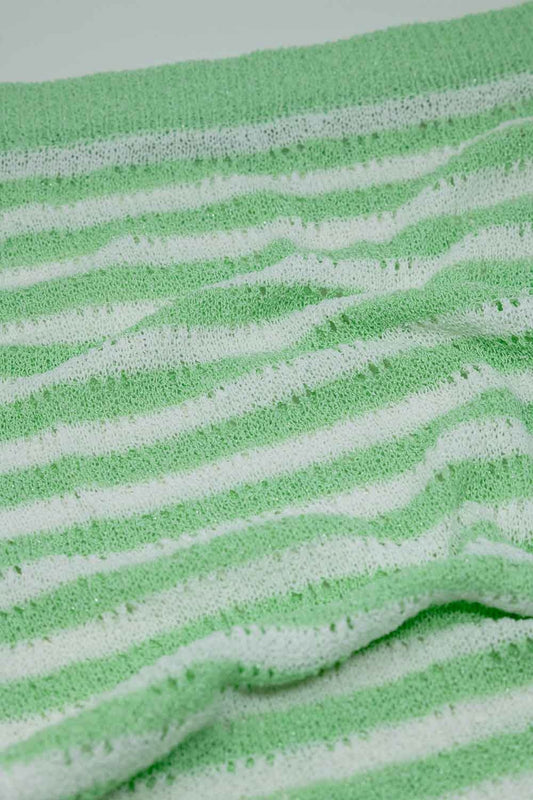Falda blanca midi de crochet con rayas verdes y dobladillo de flecos
