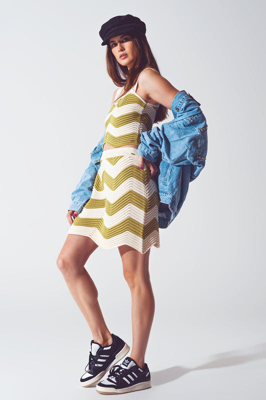 Falda recta con cintura estilo paper bag y abertura frontal en amarillo