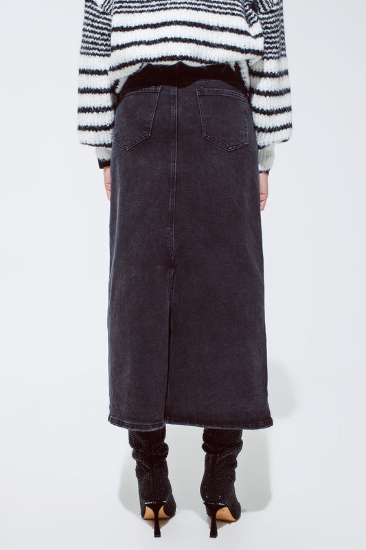 Falda vaquera con abertura frontal y botones dorados en los laterales