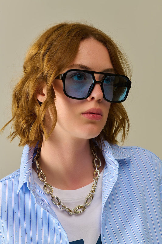 Gafas de sol con montura cuadrada dorada y azul claro degradado