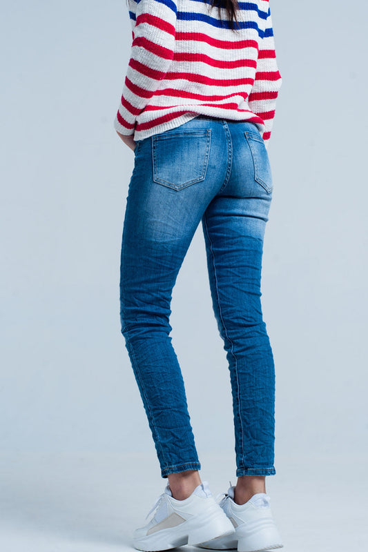 Vaquero con lavado oscuro y raya lateral plateada brillante