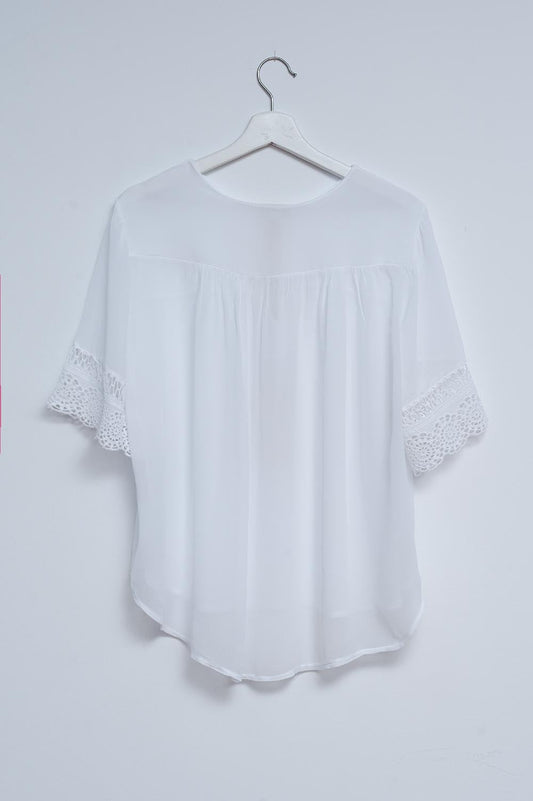 Blusa blanca con lazadas en la parte delantera y bordados