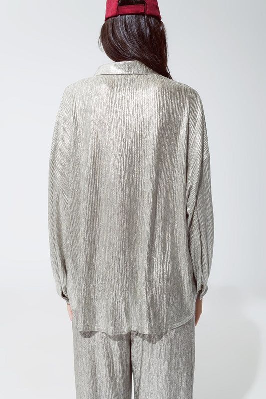 Camisa relajada con botones y mangas globo plateada