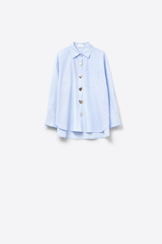 Camisa relajada de popelina con botones dorados en forma de corazón en azul bebé