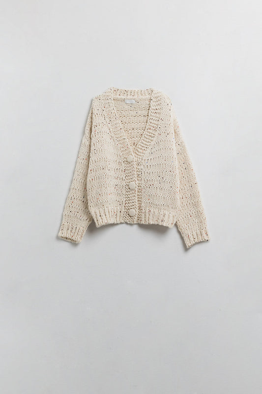 Chaqueta oversize de punto grueso en color crema con detalle de lentejuelas