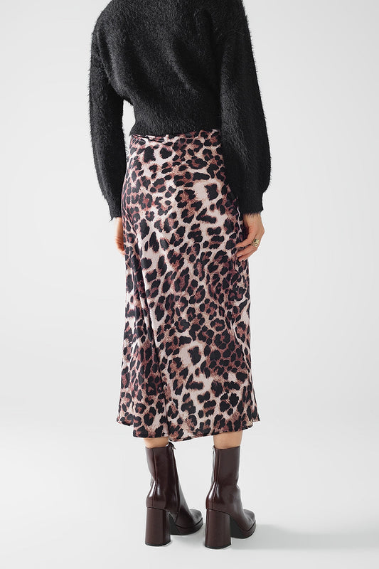 Falda midi acampanada con estampado de leopardo