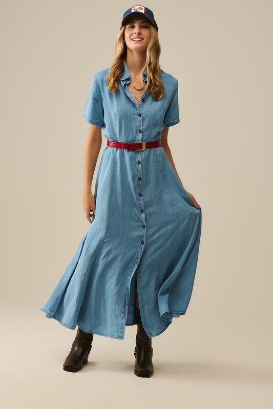 Maxi Vestido Azul Claro Abotonado Tejido Tencel
