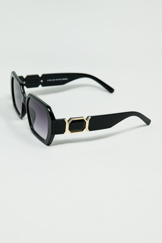 Gafas de sol negras en forma de diamante y detalle dorado