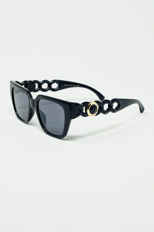 Gafas de sol negras gruesas y geométricas con lentes negras