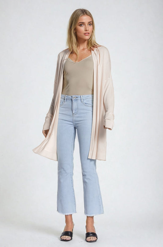 Maxi cárdigan de ganchillo azul bebé con mangas largas