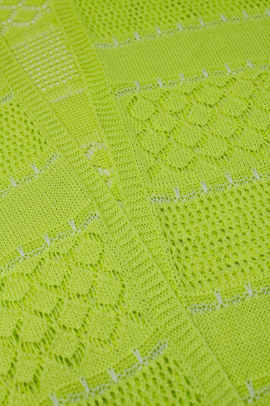 Maxi cárdigan de ganchillo en color lima con mangas largas