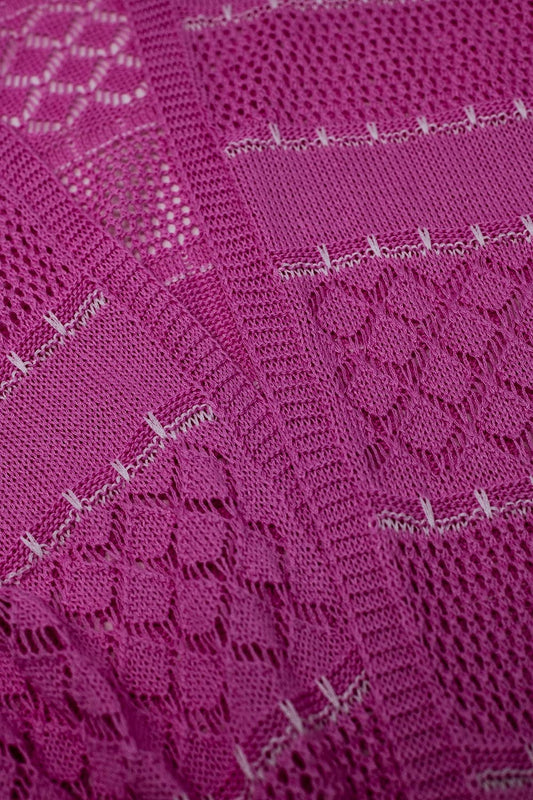 Maxi cárdigan de ganchillo rosa con mangas largas