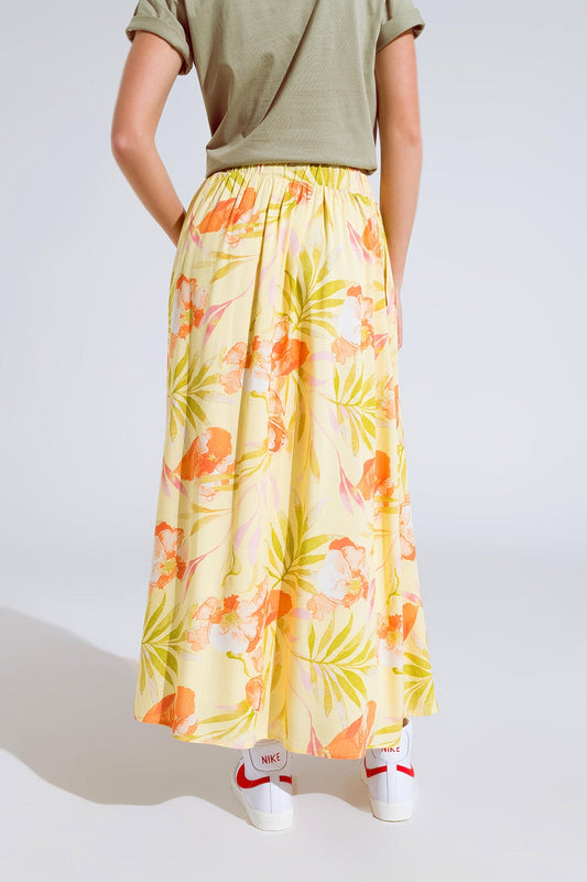 Maxi falda de popelina naranja con detalle de nudo en la cintura