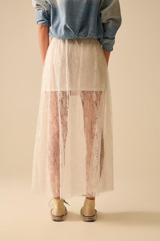 Maxi falda blanca de encaje con detalle de lentejuelas