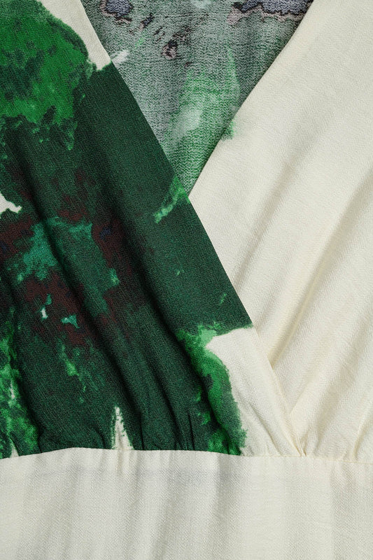 Maxi vestido boho con mangas globo y estampado de hojas en verde