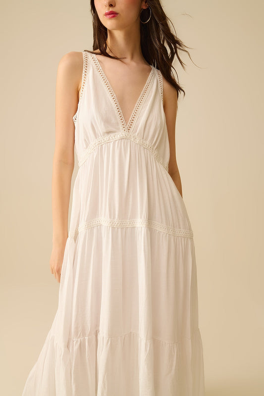 Maxi Vestido Blanco Con Detalles De Encaje Y Estilo Boho